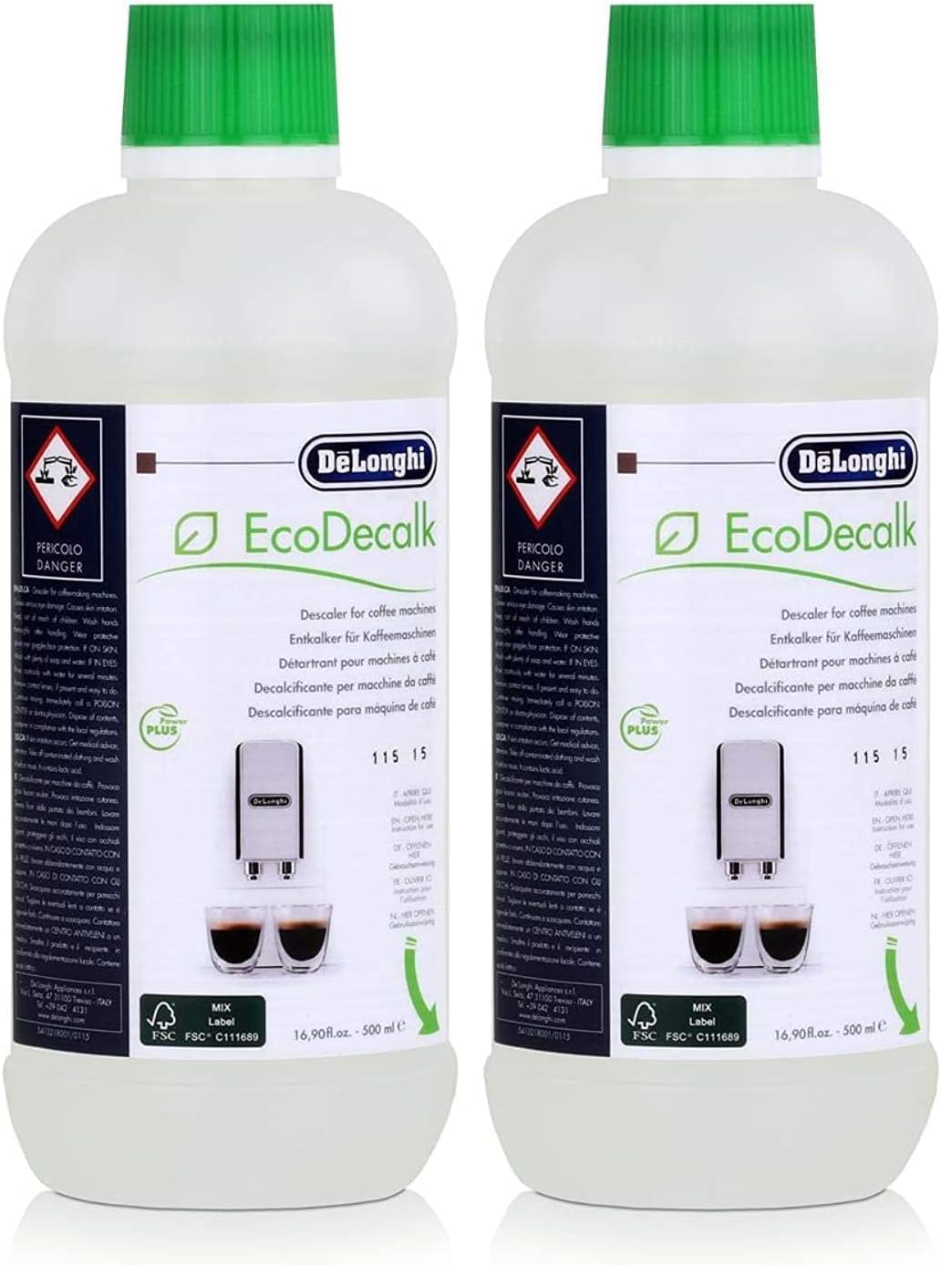 Original DeLonghi Entkalker EcoDecalk für Espresso- und Kaffeemaschinen 500ml Kaffeevollautomaten entkalken mit dem Original DeLonghi Entkalker. EcoDecalk umweltfreundlicher Entkalker EcoDecalk ist der neue ökologische Entkalker von De’Longhi Labortests beweisen, dass der EcoDecalk 3 mal stärker ist als herkömmliche Entkalker 2x 500 ml für 8 Anwendungen entfernt jegliche Kalkablagerungen